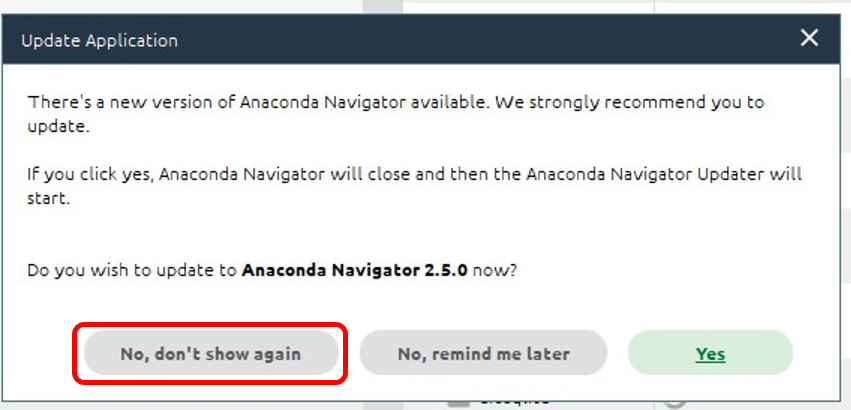 Anaconda Navigatorが起動し、ログイン画面が表示されたら右上の「×」をクリックしログイン画面は閉じます。